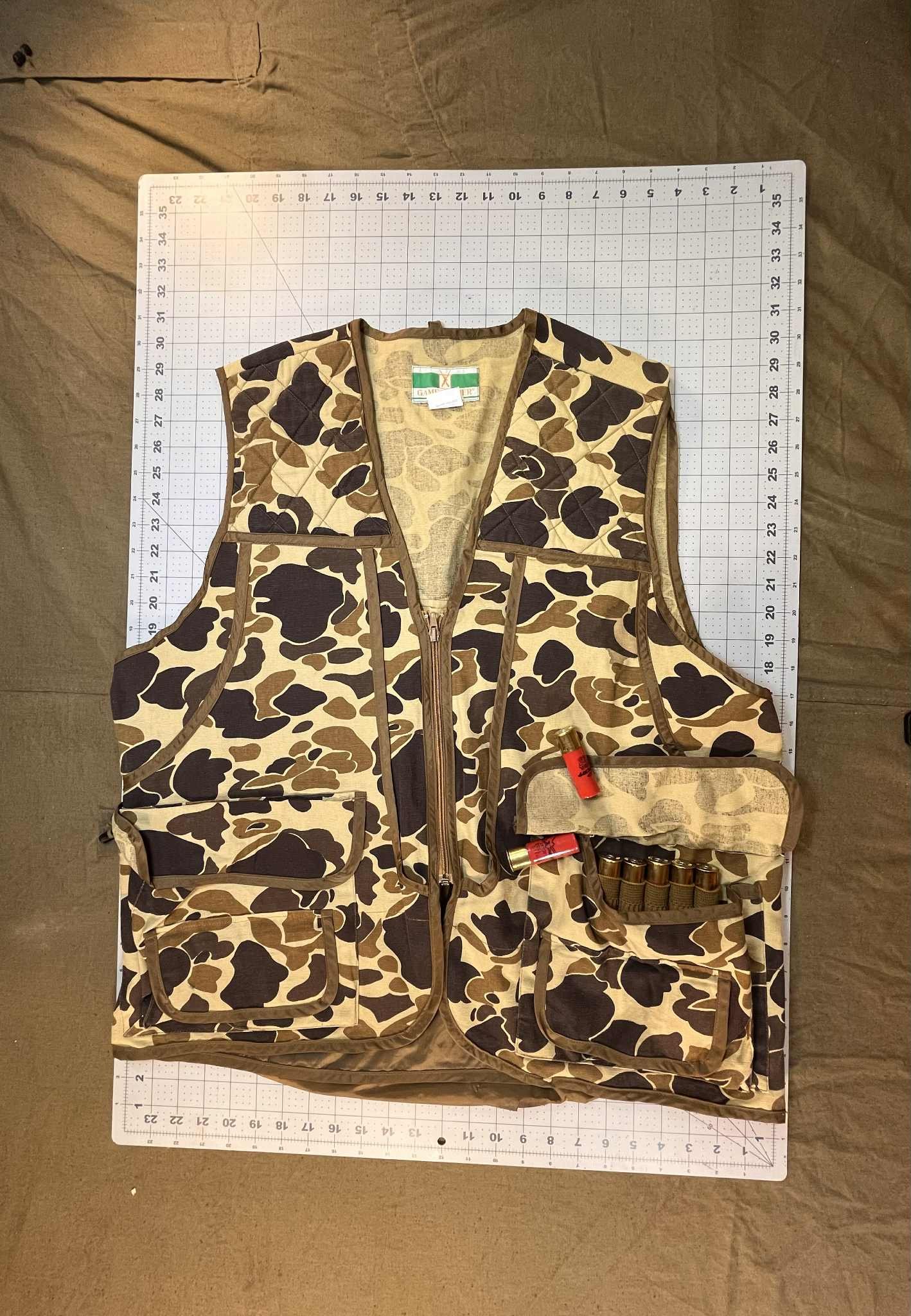Duck camo pheasant vest with some light wear.