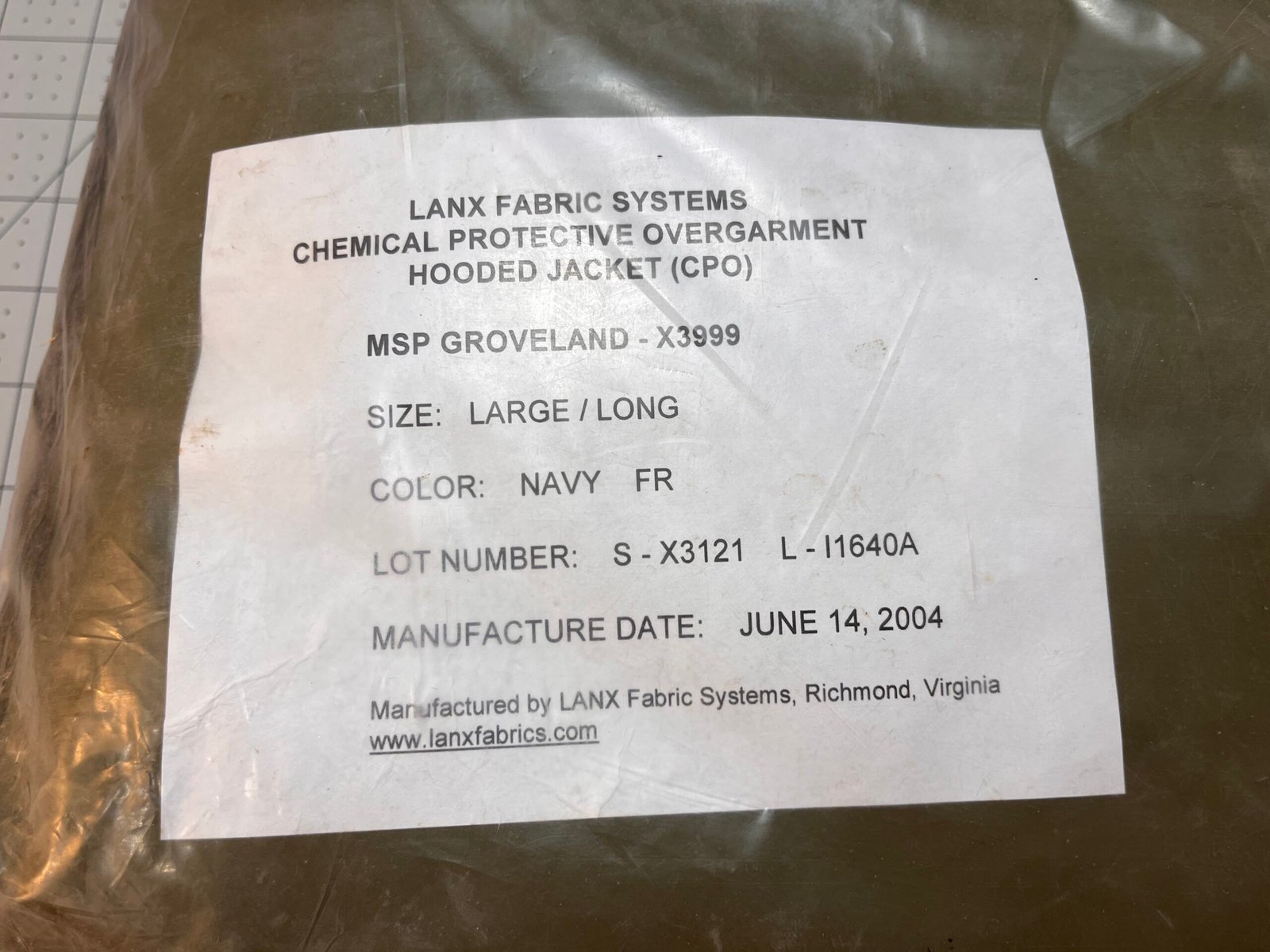 Sealed and in Size Large/Long this Fire Resistant jacket is kind of cool look up a pic of someone wearing it.