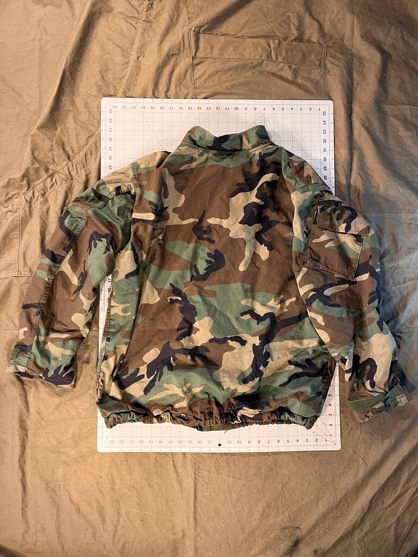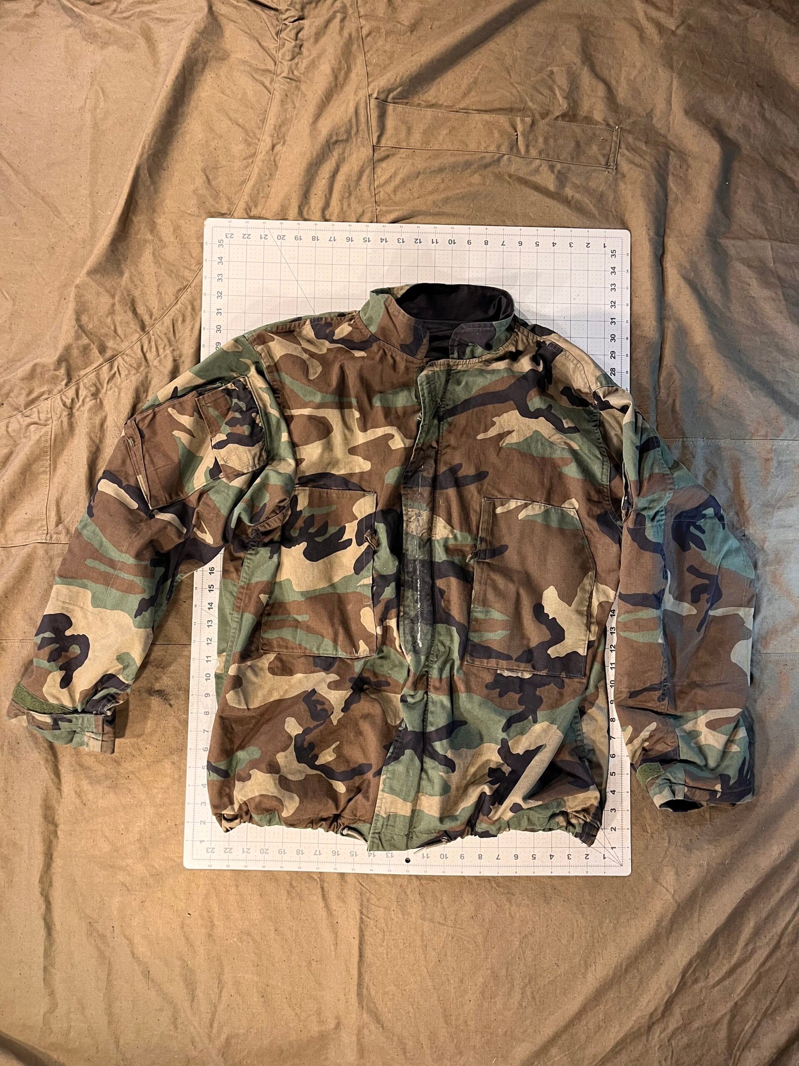 All size Medium in issued condition (covered in charcoal) with light wear and an oversized fit. Duct tape residue present.