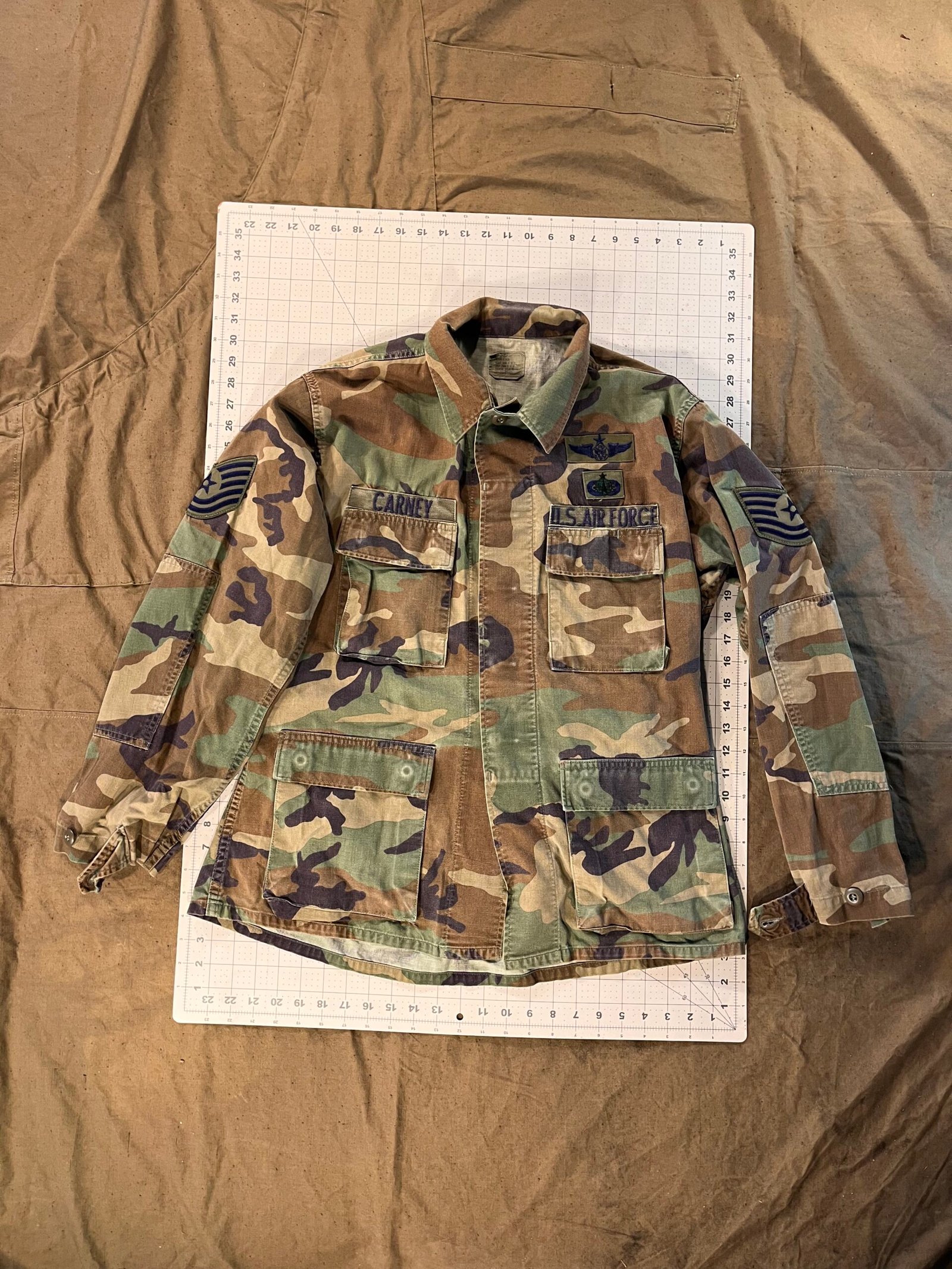 Condition ranges from lightly to heavily worn free from any excessive stains, rips, or tears. Patches or name tapes may be present as well as the addition of personal tags or hand written names.