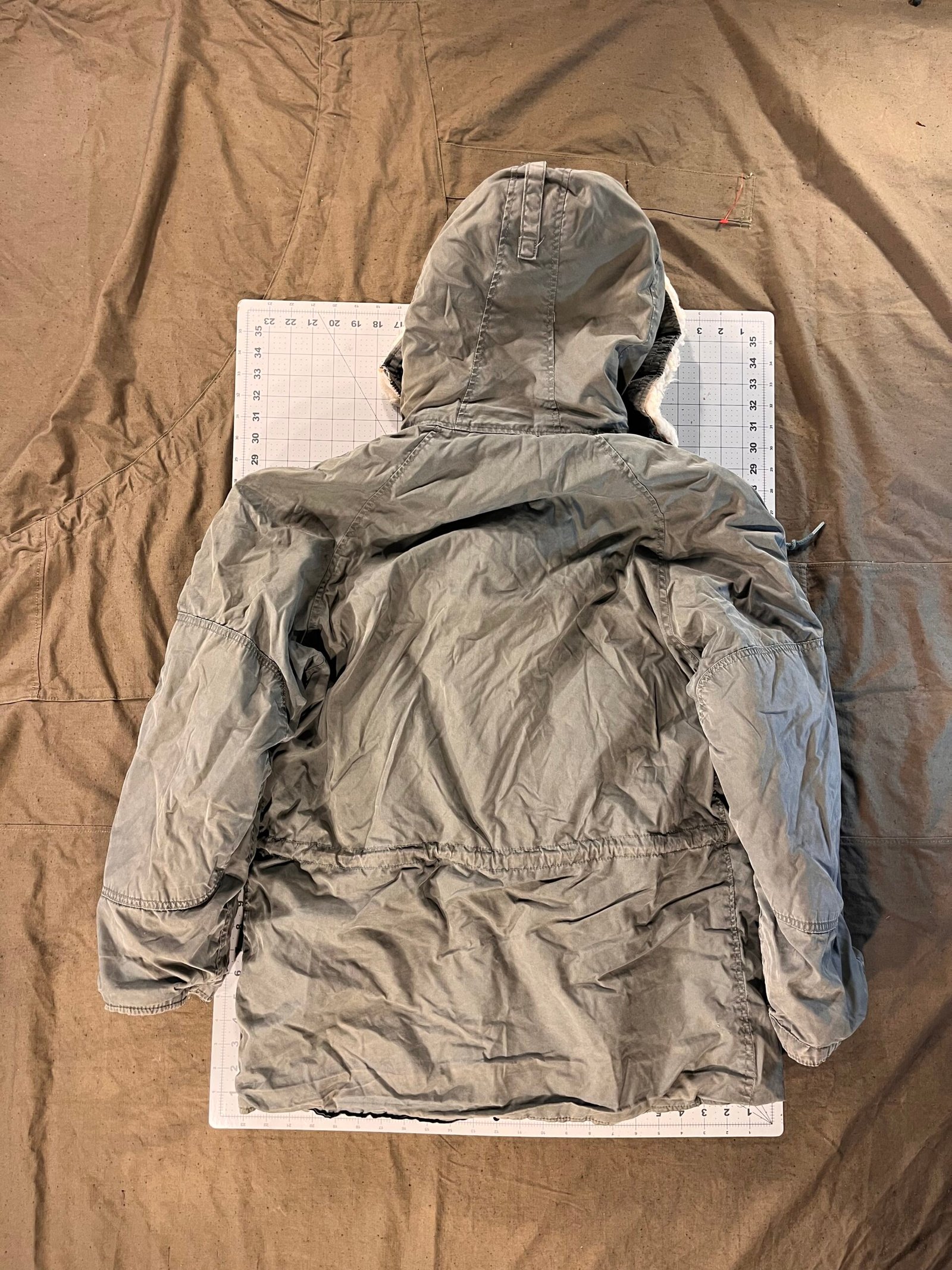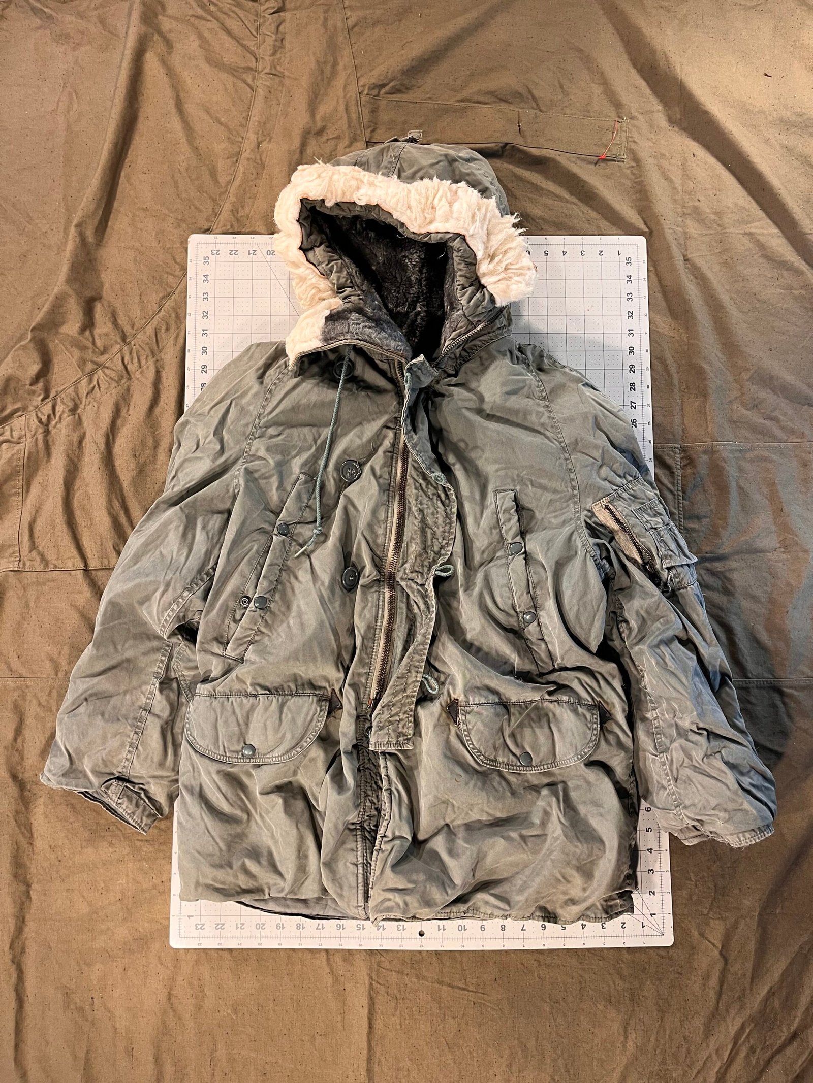 N-3B Parka size Medium with damage to the inside of the jacket.