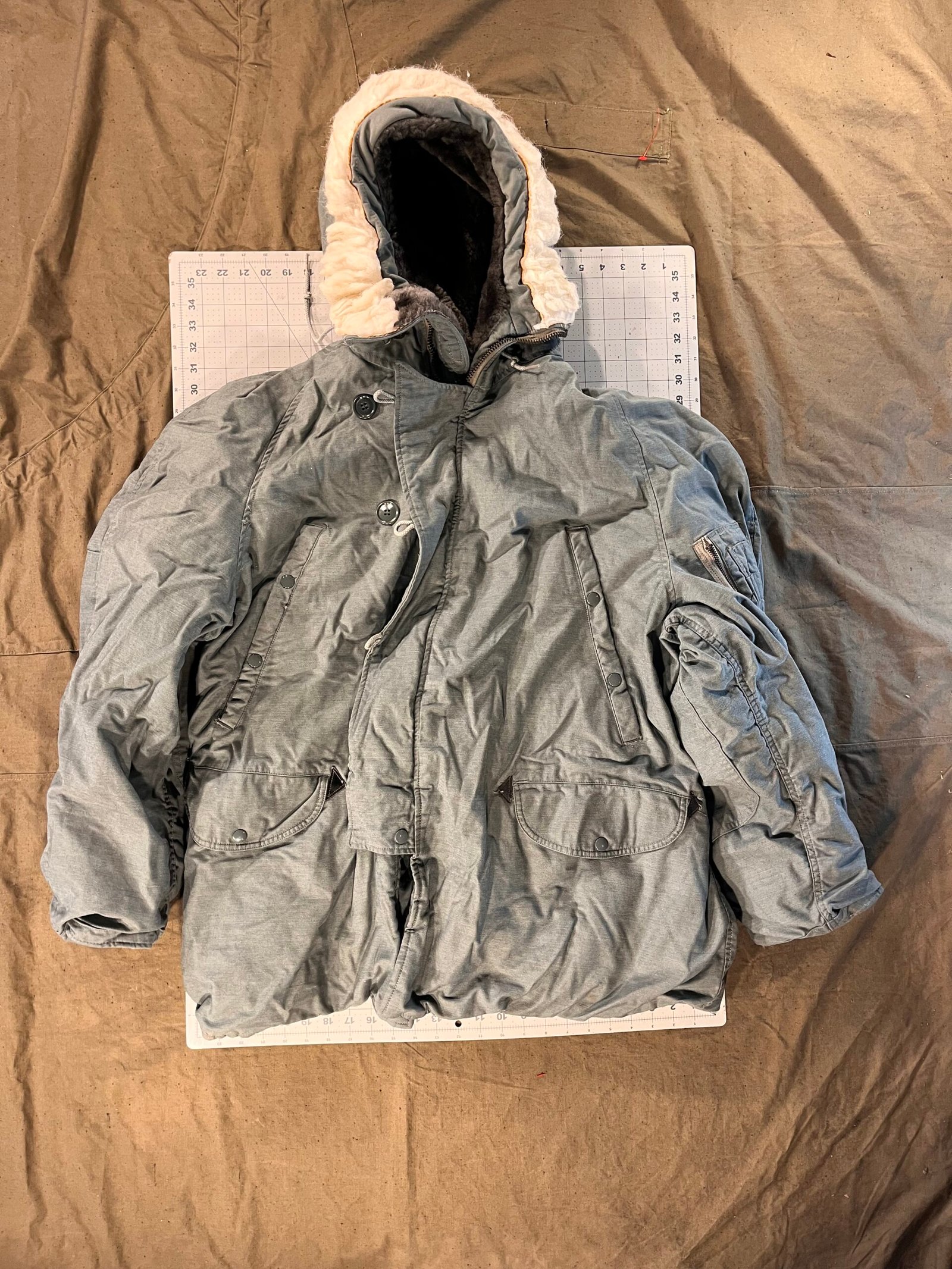 An N-3B Parka size X-Large with light wear.